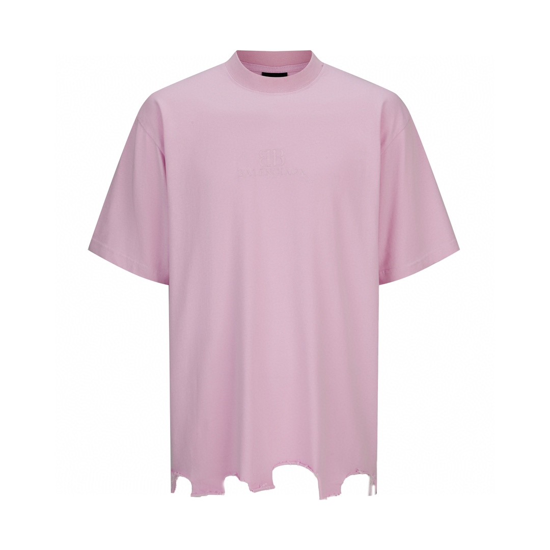 Balenciaga 巴黎世家 下摆流苏字母刺绣Logo 短袖 T恤 圆领 短款 夏季 粉色