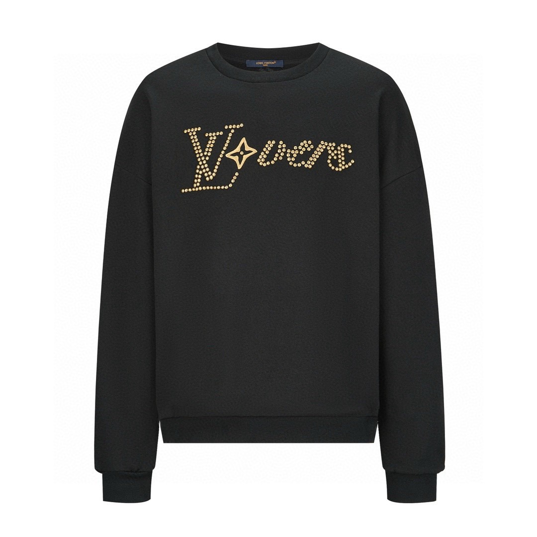 LOUIS VUITTON 路易威登 LV 铆钉字母刺绣 卫衣 圆领 长袖 黑色 1AFVAO