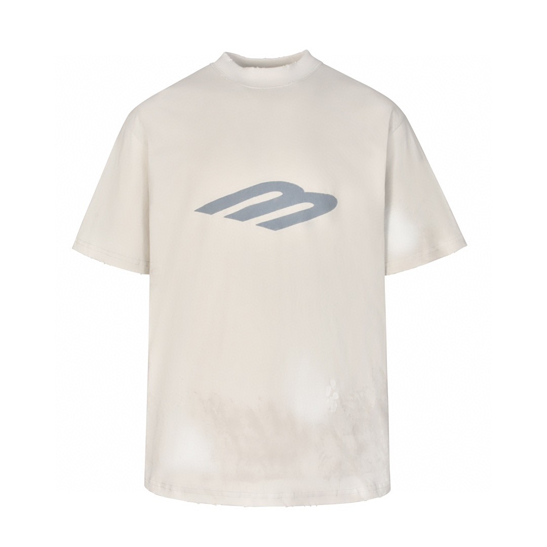 Balenciaga 巴黎世家 3B字母Logo涂鸦破洞 短袖 T恤 圆领 短款 夏季 米色