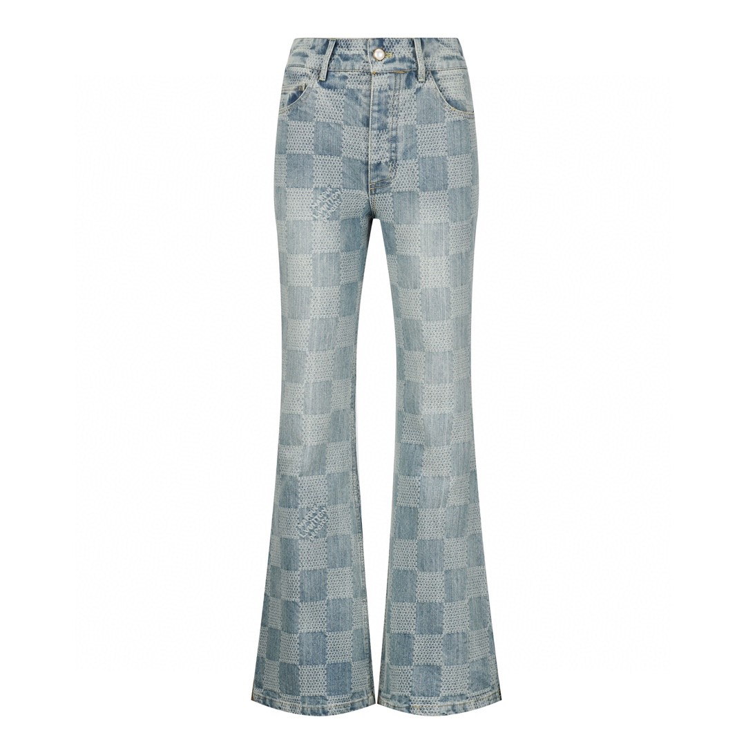 LOUIS VUITTON 路易威登 棋盘格喇叭牛仔裤 裤子 长裤 蓝色 1AFI22