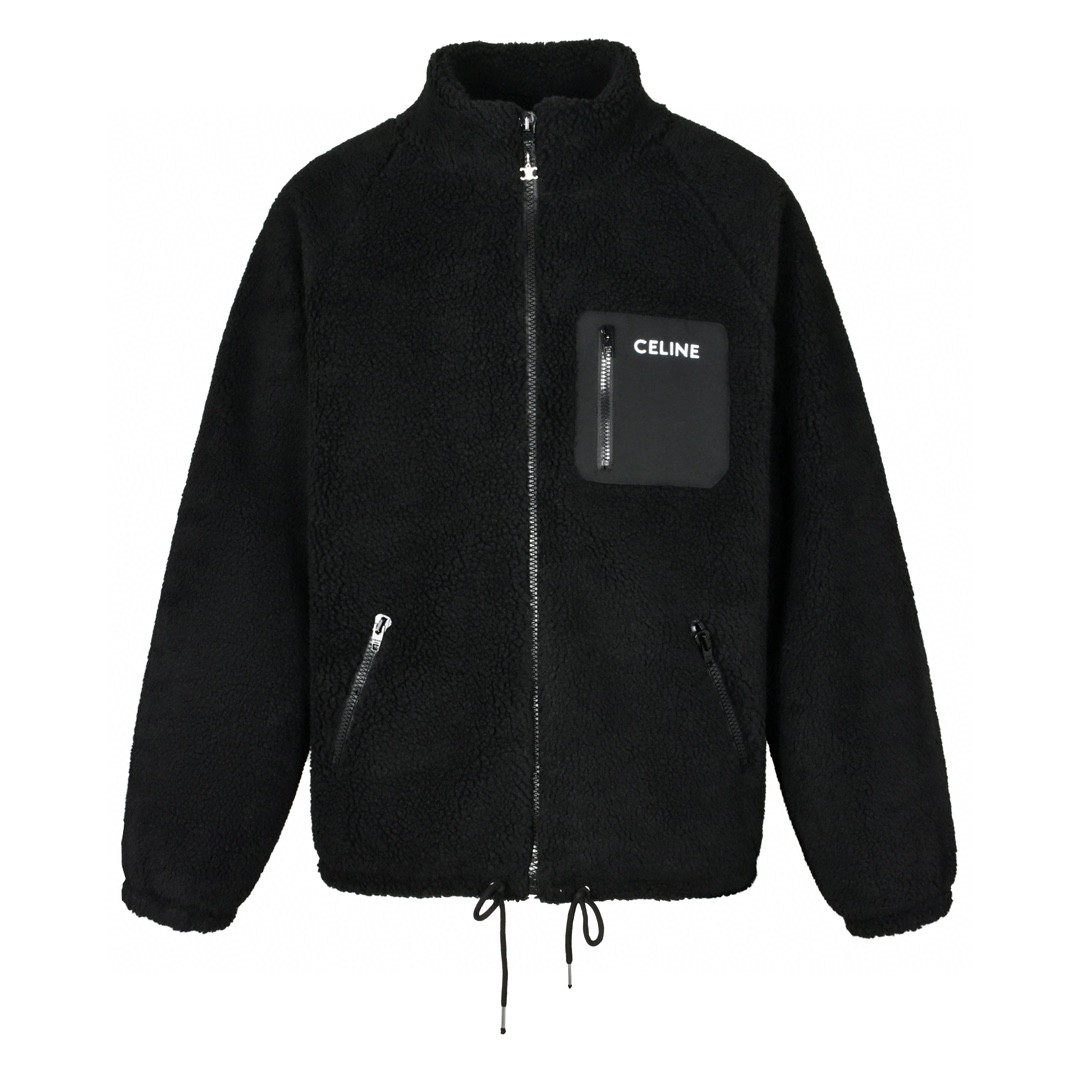 CELINE 赛琳 口袋字母logo羊羔毛泰迪拉链立领夹克 外套 长袖 黑色