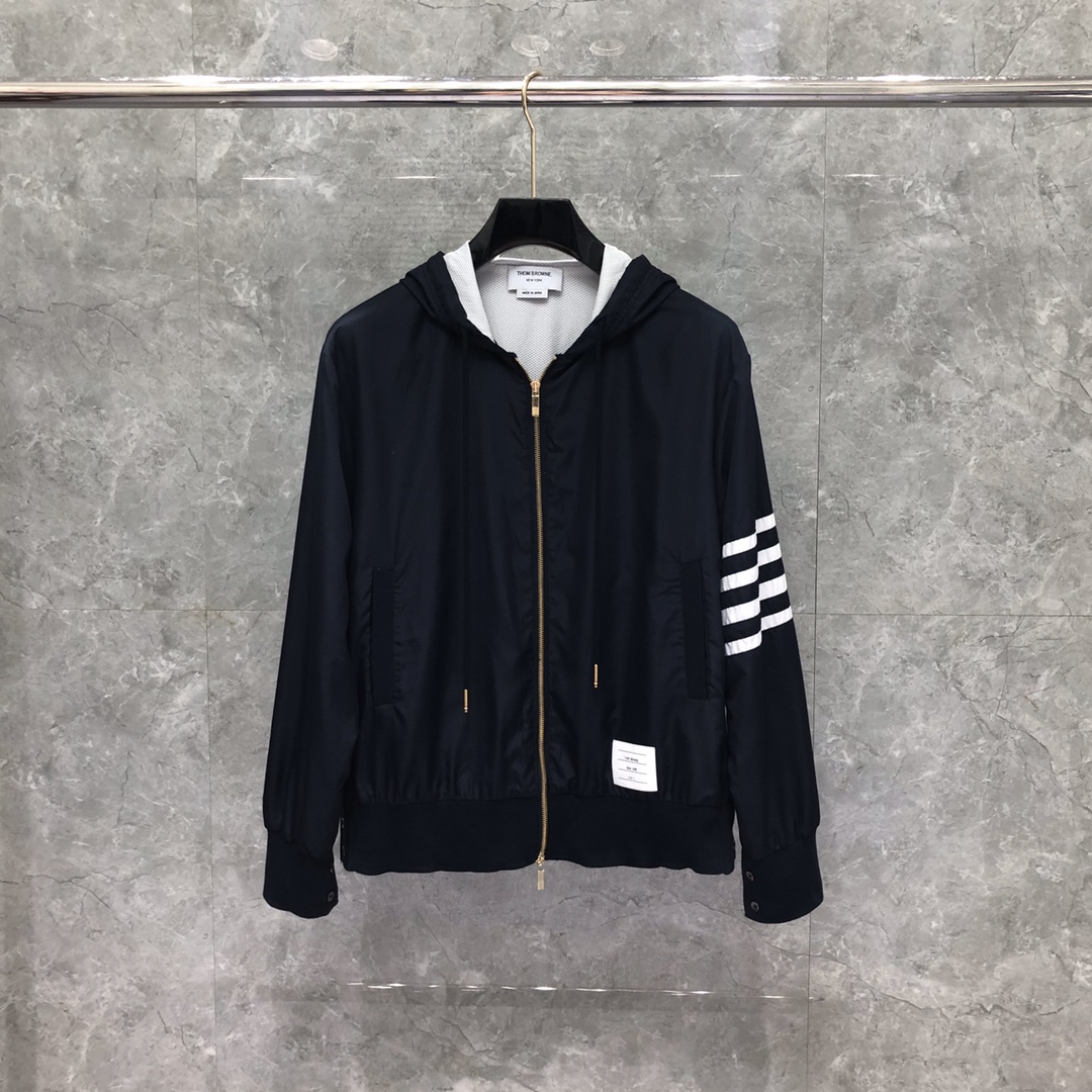 THOM BROWNE 经典四杠网眼透气拉链连帽夹克 外套 长袖 藏青色