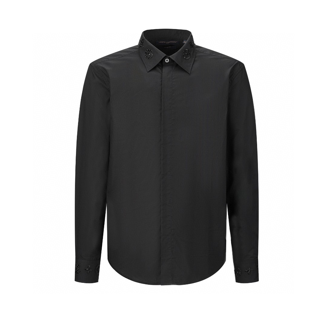 LOUIS VUITTON 路易威登 领口袖口烫钻衬衫 长袖 黑色 1AFJXE