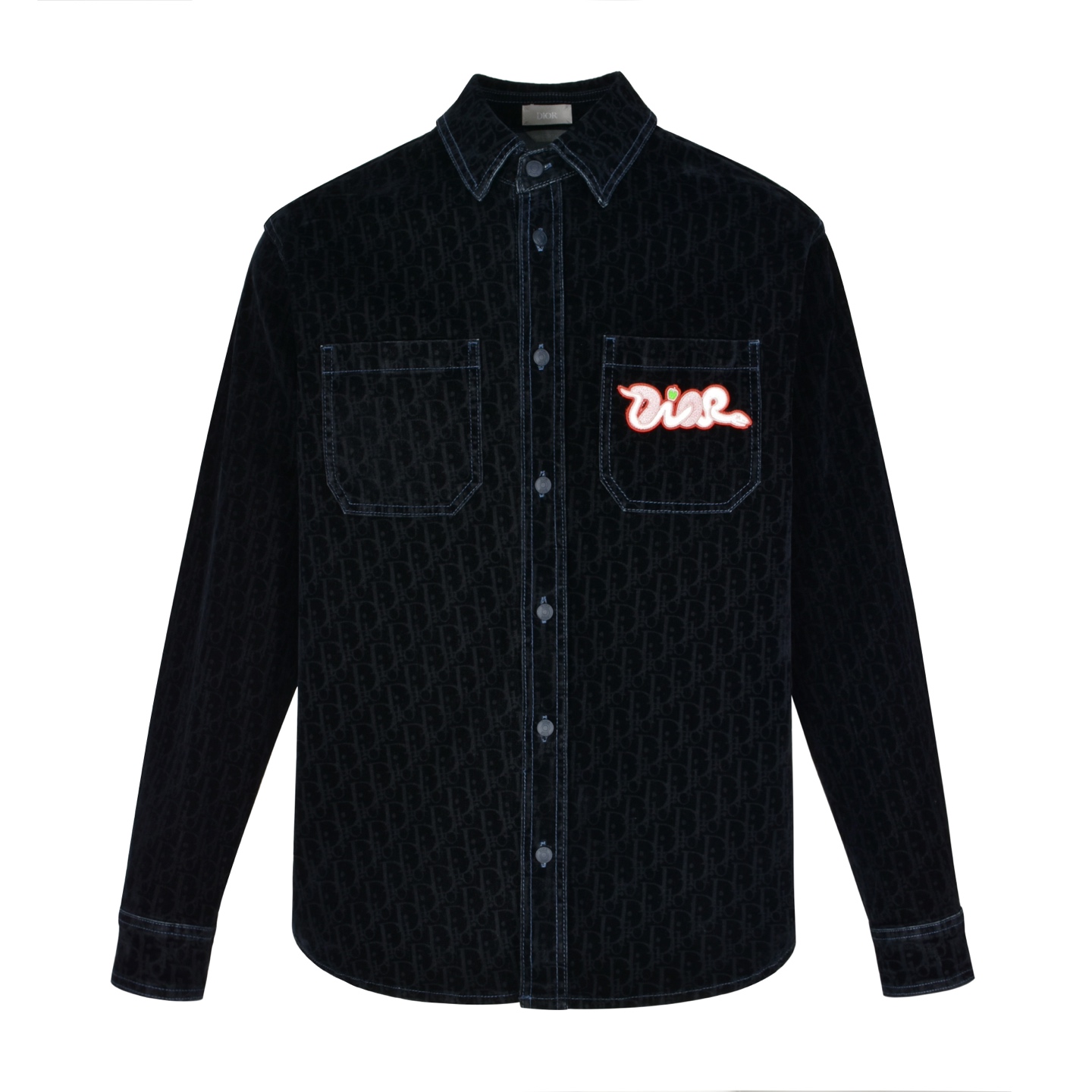 DIOR 迪奥 蛇年限定刺绣字母logo满印牛仔衬衫 外套 长袖 蓝色 513D595A321X-C584