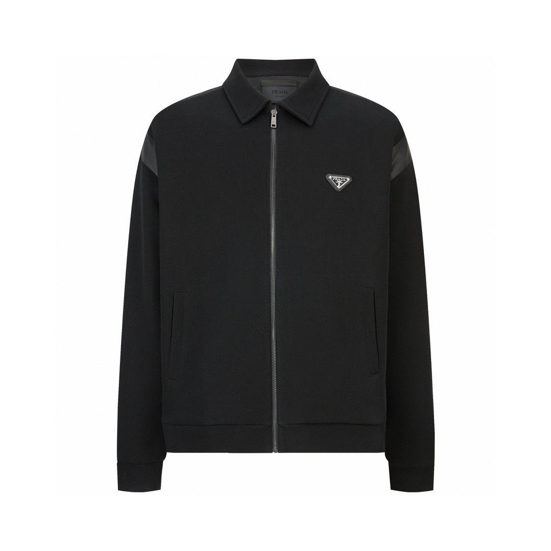PRADA 普拉达 拼接纯色徽标拉链夹克 外套 长袖 黑色 UJL85B-16AU-F0002-S-OOO