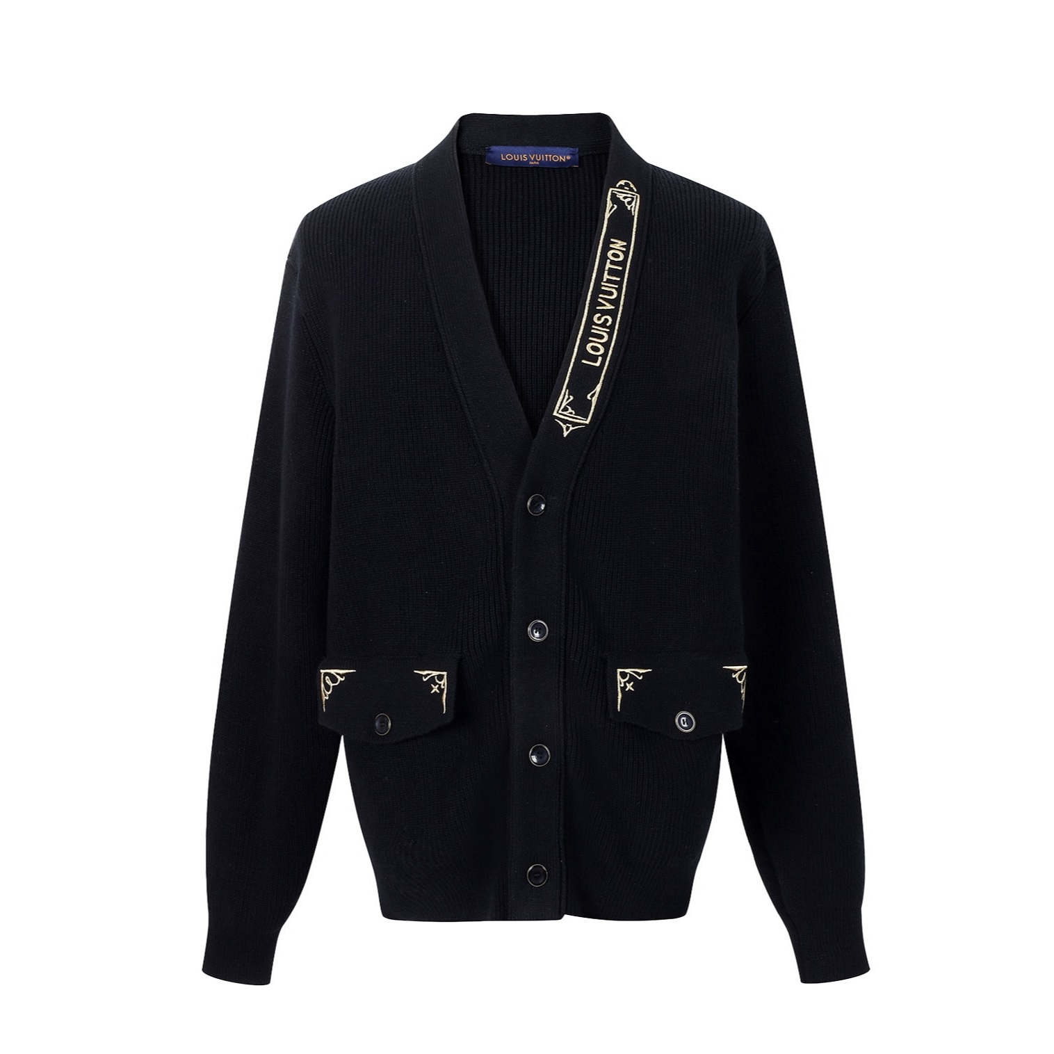 LOUIS VUITTON 路易威登 LV 金丝刺绣开衫 单排扣 针织 上衣 黑色 1AHVNO