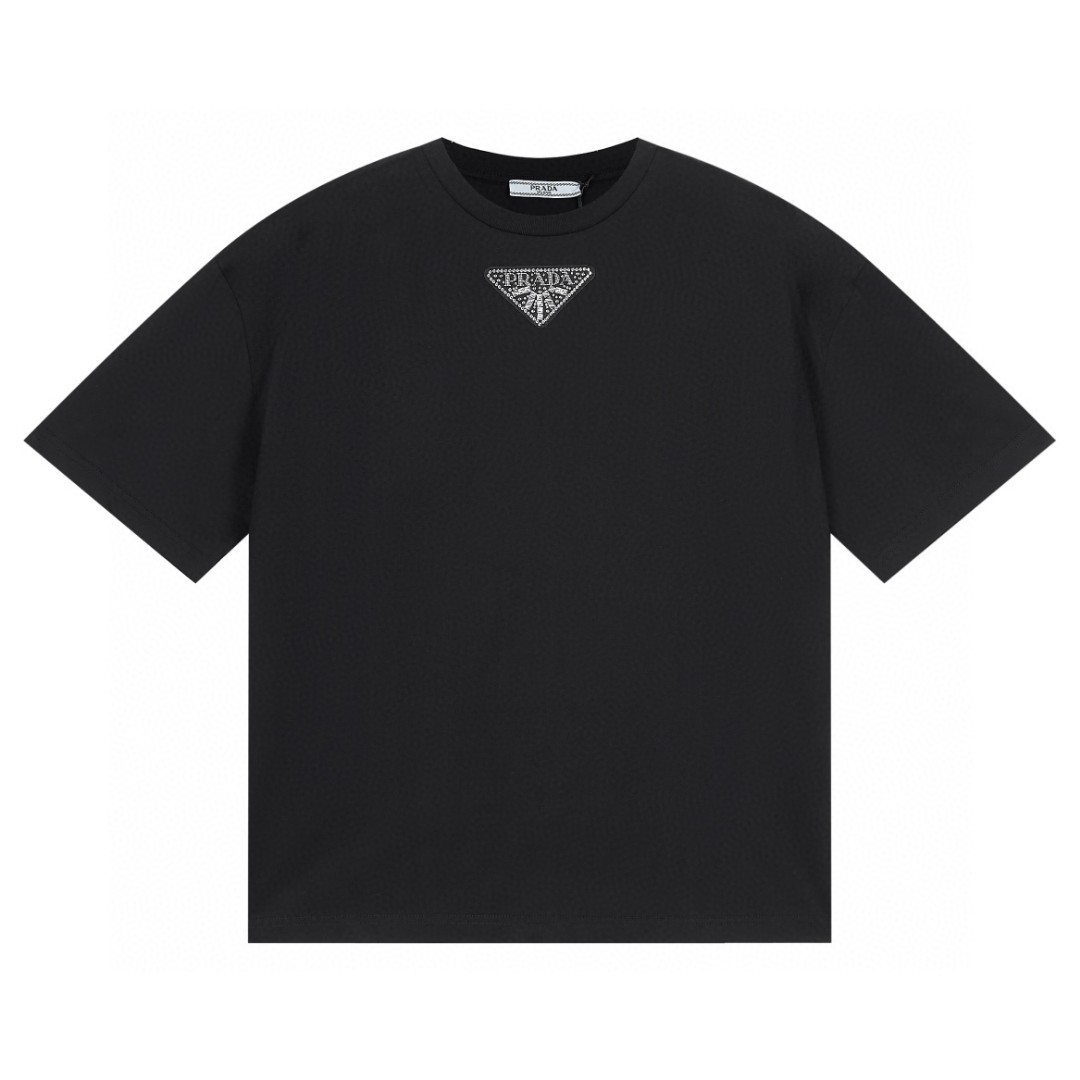 PRADA 普拉达 假日系列 纯色徽标烫钻 圆领 短袖 T恤 黑色 3572AR-12GY-F0002-S-212