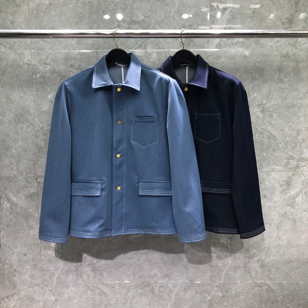 THOM BROWNE 多口袋明线牛仔外套 夹克 外套 长袖 浅蓝色 藏青色
