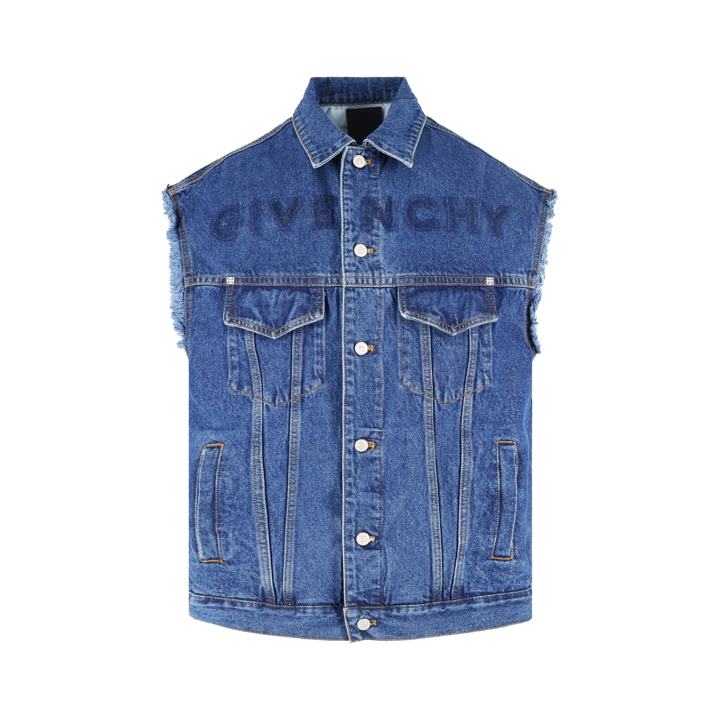 Givenchy 纪梵希 做旧字母logo印花毛边单排扣牛仔马甲 背心 蓝色 BM01295Y4V-415