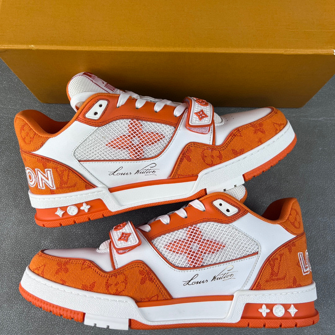 Louis Vuitton 路易威登 Trainer 魔术贴 低筒 休闲鞋 板鞋 运动鞋 男鞋 女鞋 白橙 1A9ZBI