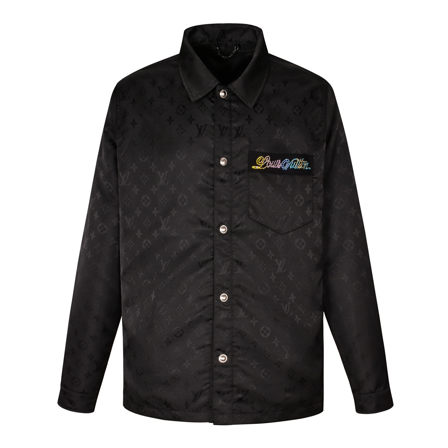 LOUIS VUITTON 路易威登 LV 丝绸彩钻衬衫 莱茵石标识 波纹提花桑蚕丝 外套 夹克 卫衣 长袖 黑色B5 1AGTGN