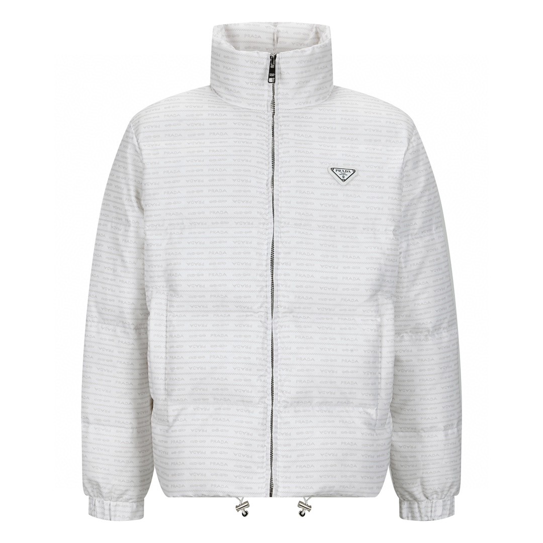 PRADA 普拉达尼龙提花拉链立领羽绒服 外套 保暖 白色 黑色