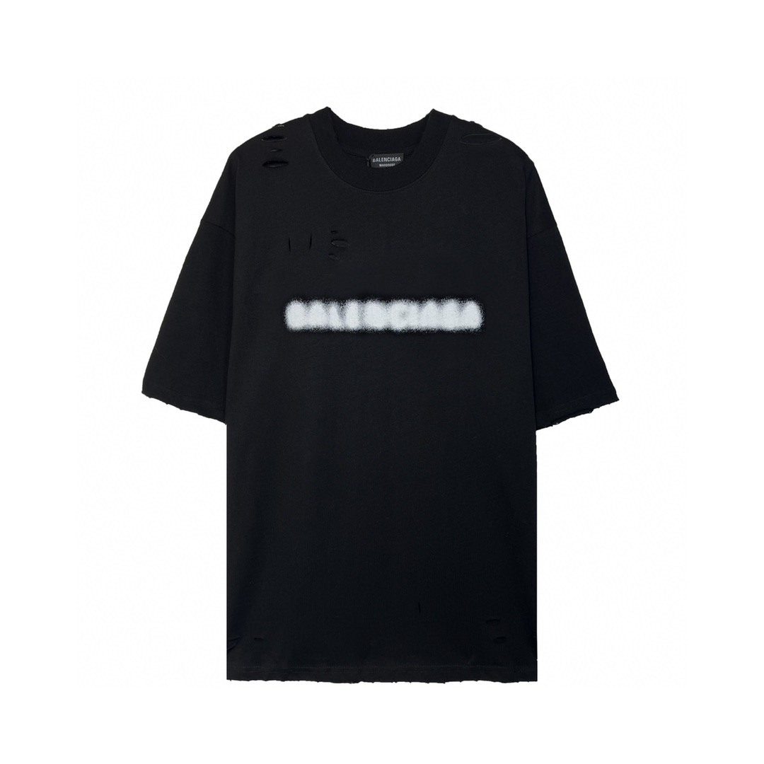 Balenciaga 巴黎世家 Blurry Logo 破洞复古平纹经典 短袖 黑色 T 恤 圆领 夏季 男女同款