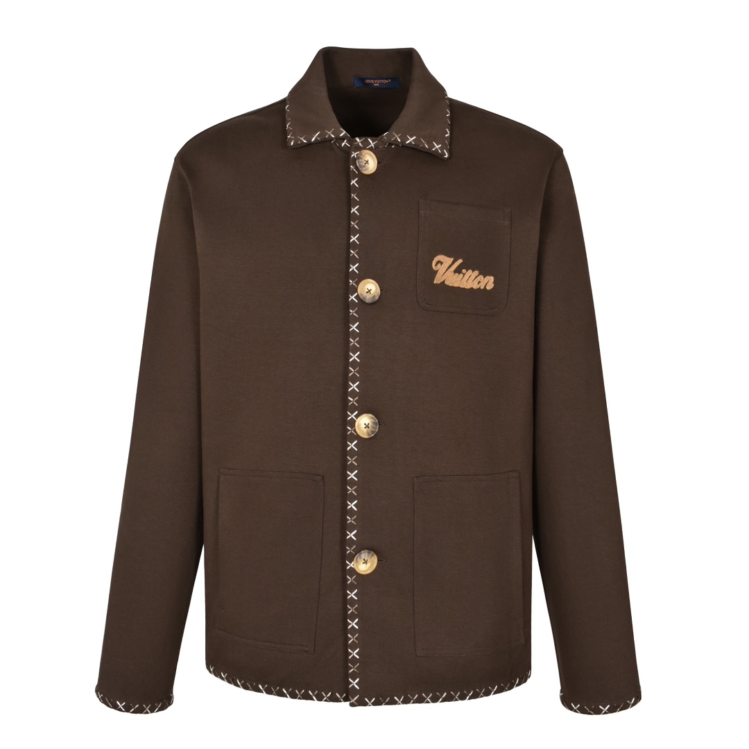 LOUIS VUITTON 路易威登 Tyler SS24 字母刺绣单排扣休闲夹克 外套 巧克力色 1AFQ33