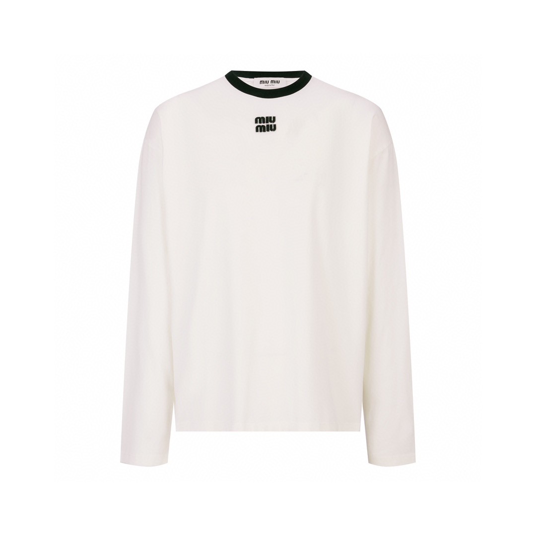 MIU MIU 缪缪 字母logo徽标打底衫 T恤 长袖 白色 MJL992-14EL-F0009