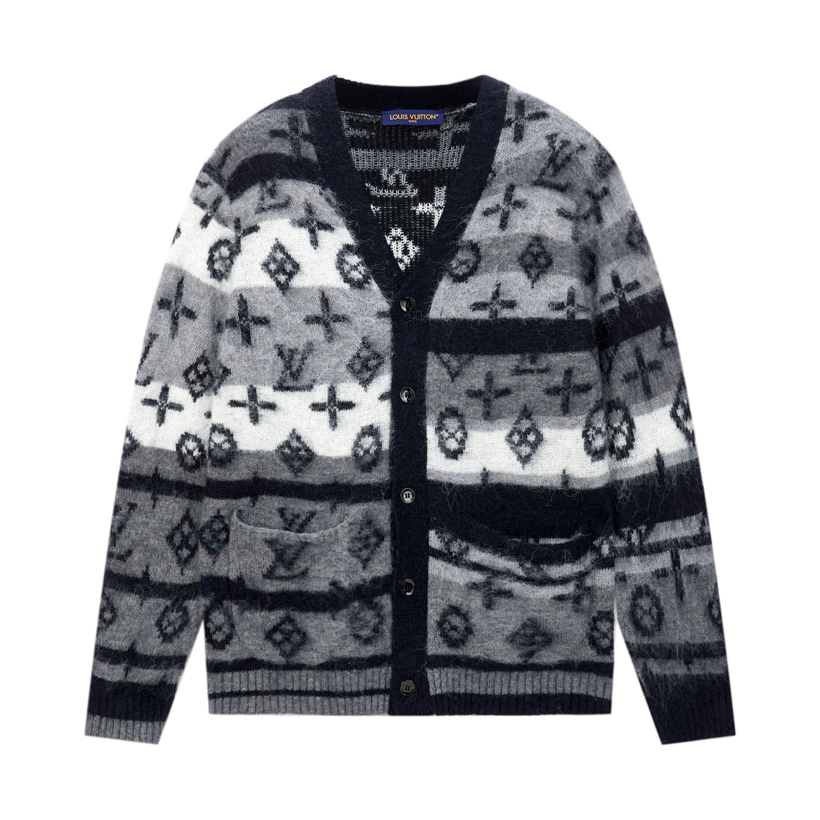 LOUIS VUITTON 路易威登 马海毛V领开衫 针织衫 毛衣 外套 黑色 B0 1AF342