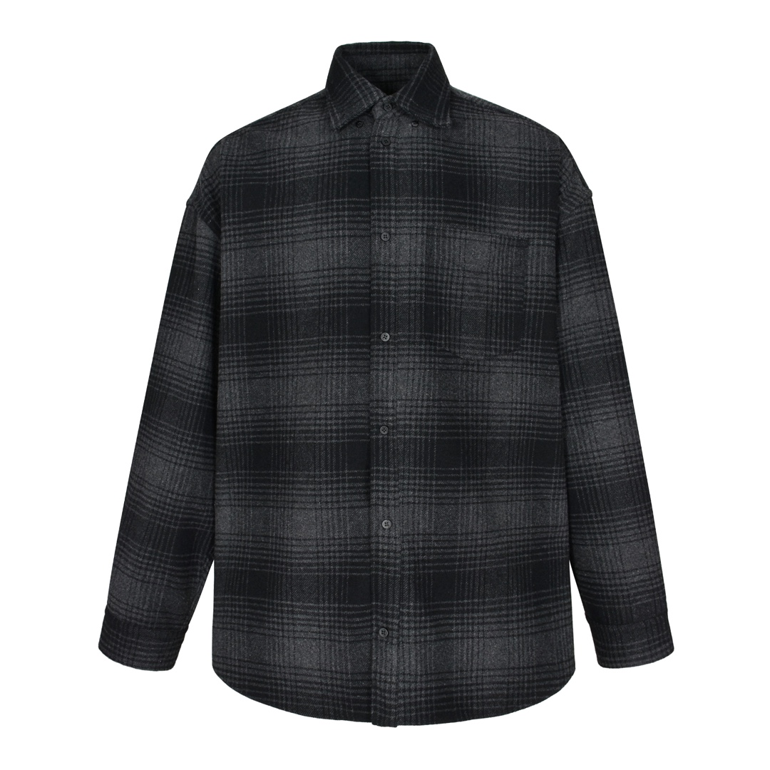 Balenciaga 巴黎世家 后背字母logo印花羊毛混纺格纹衬衫 长袖 外套 灰色 725377TRU171262
