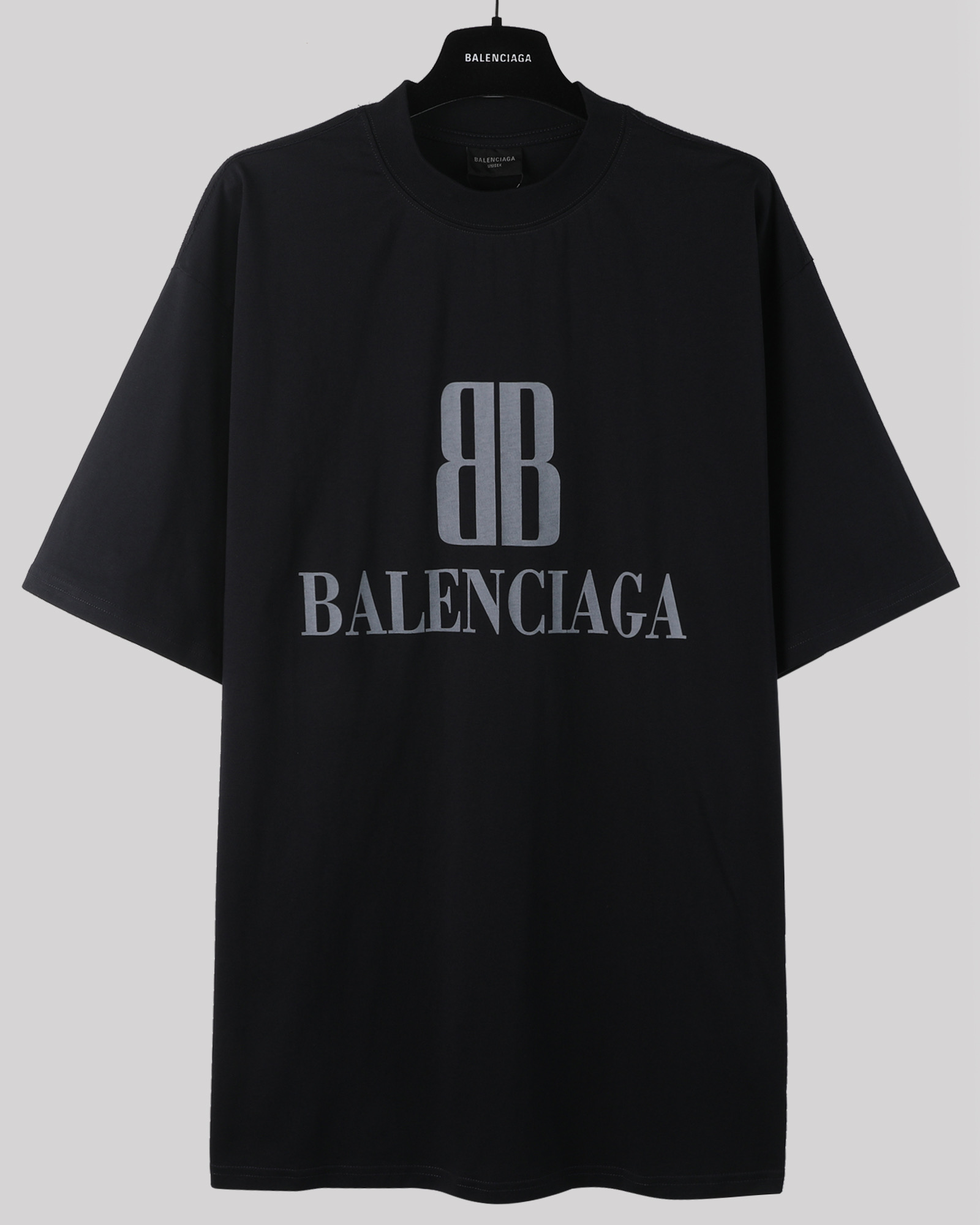 Balenciaga 巴黎世家 双B字母logo 印花短袖 T恤 圆领 短款 夏季 黑色A5 764235TSVU41083