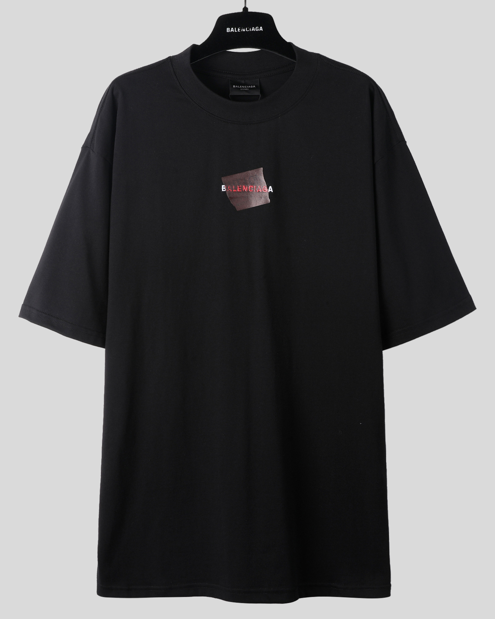 Balenciaga 巴黎世家 美纹纸胶带 印花短袖 T恤 圆领 短款 夏季 黑色A5 764235TSVG28737