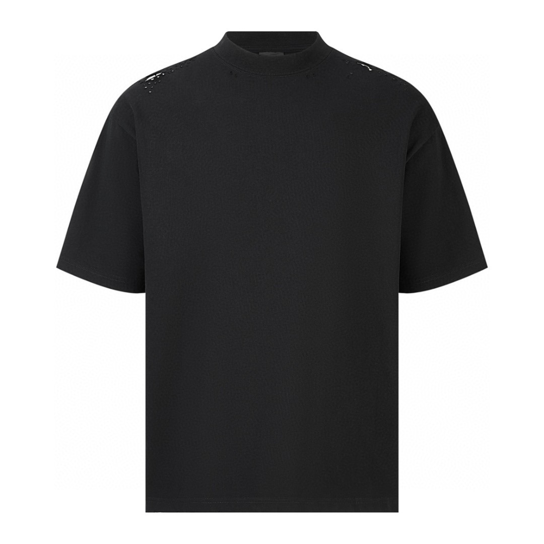 Balenciaga 巴黎世家 做旧破洞梵文字母logo印花短袖 T 恤 圆领 夏季 黑色 764235TQVJ81569
