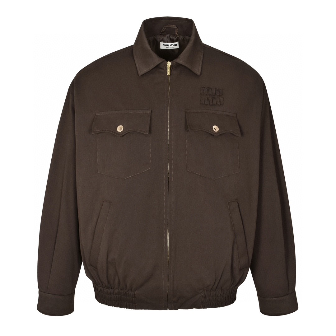 MIU MIU 缪缪 纯色字母刺绣拉链夹克 长袖 外套 棕色 ML1053-144D-F0324-S-OOO