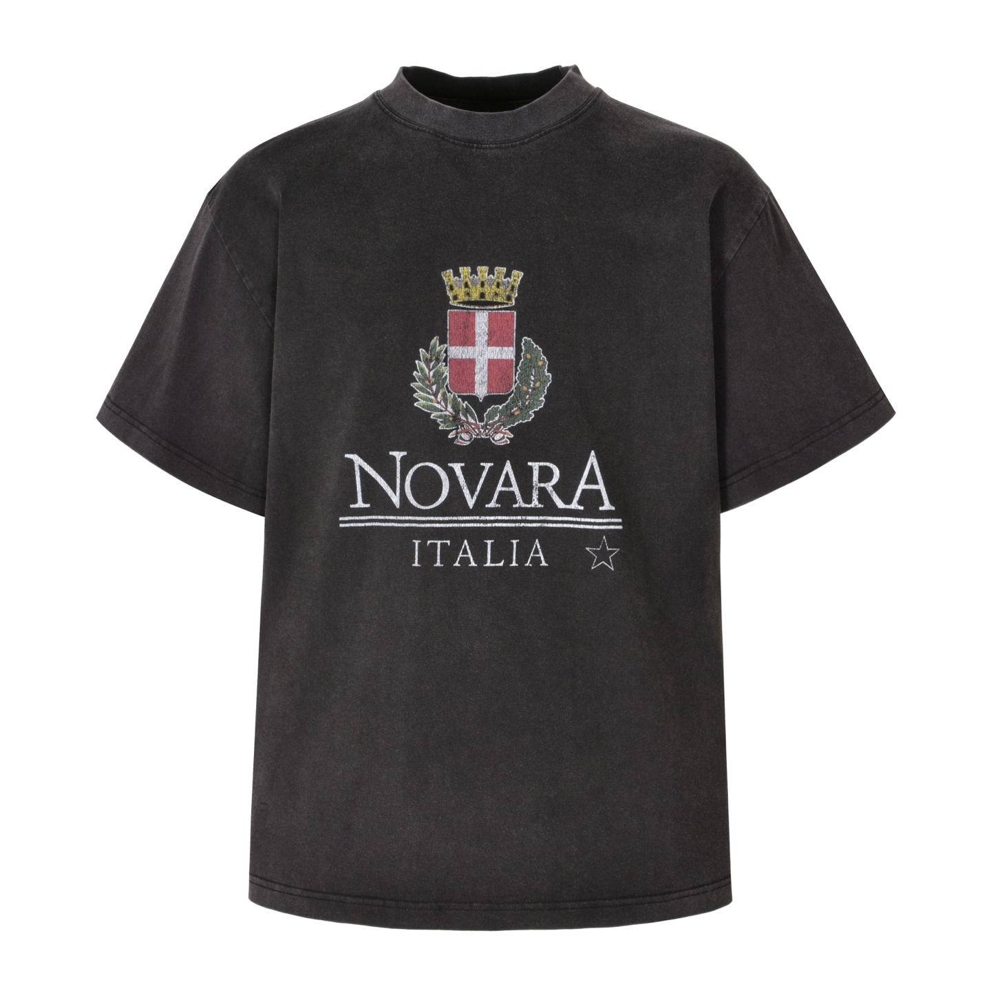 Balenciaga 巴黎世家 NOVARA 皇冠十字架龟裂 印花 短袖 T恤 圆领 短款 夏季 洗水灰 811688TRVP21055