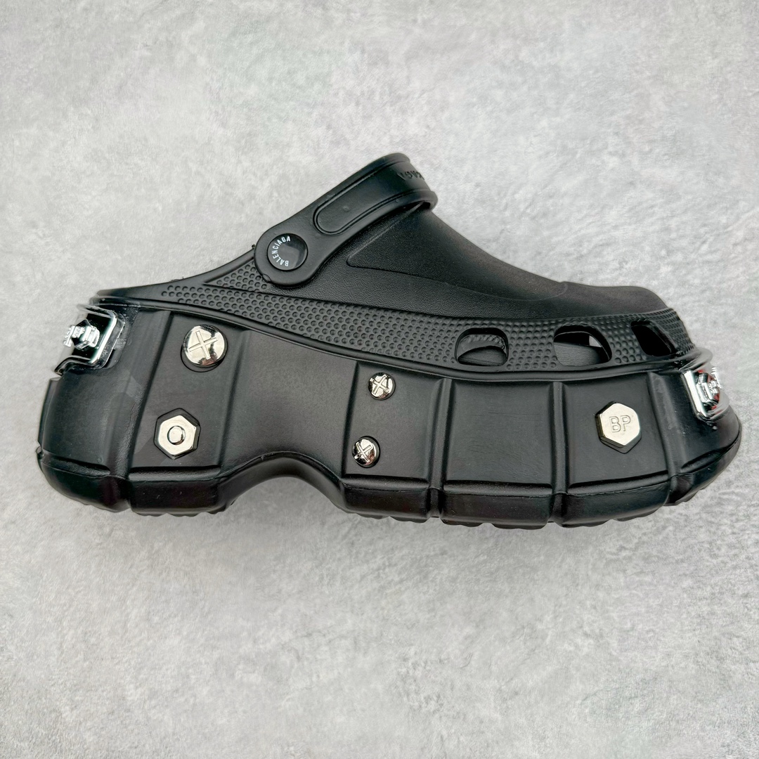 BALENCIAGA Crocs HardCrocs Sandal 卡骆驰 白色 洞洞鞋 凉鞋 室内外 拖鞋 沙滩鞋 黑银金属铆钉”687398 W1S8N 1081