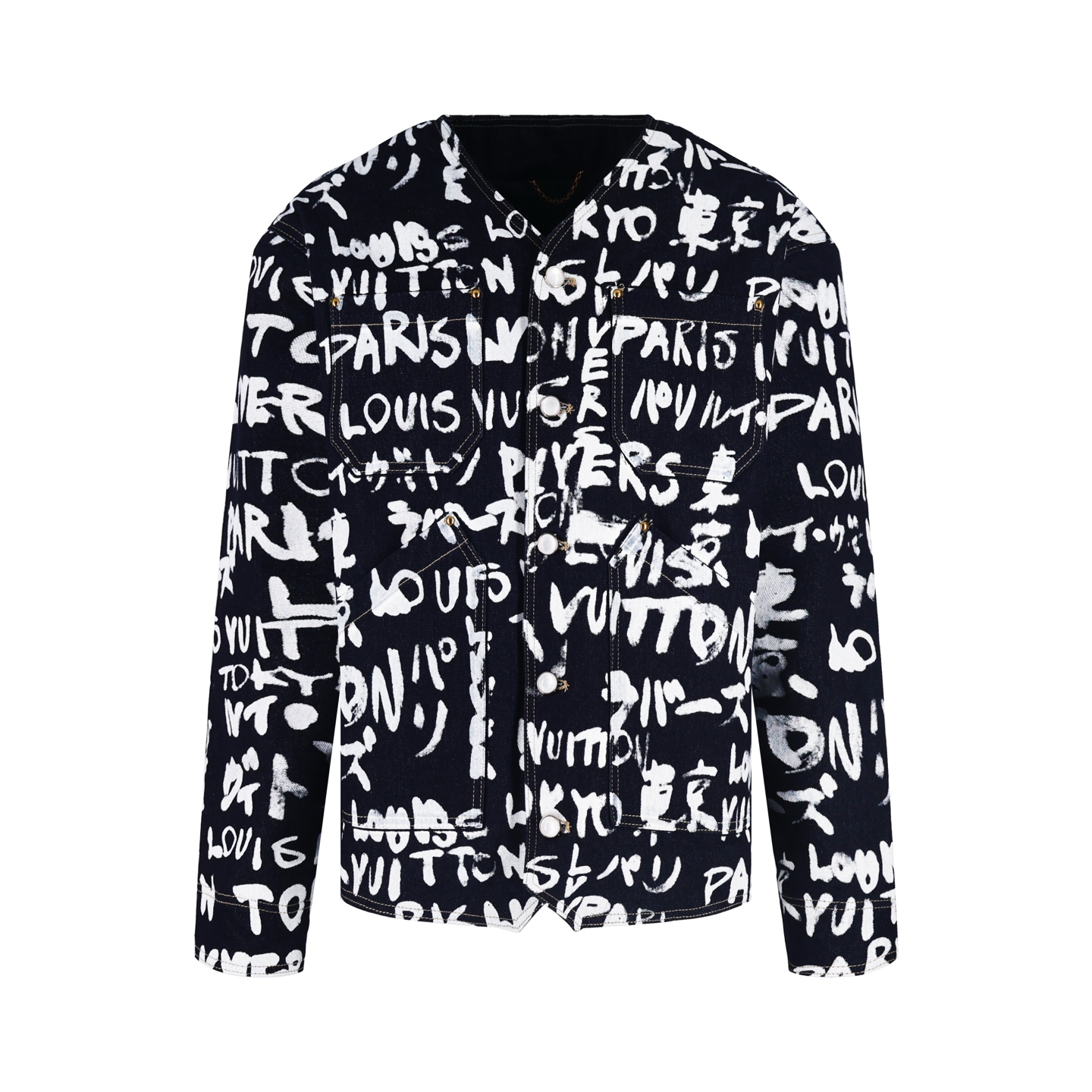 LOUIS VUITTON 路易威登 Nigo联名款 涂鸦无领棉服 牛仔外套 夹克 长袖 C0 1AILLM