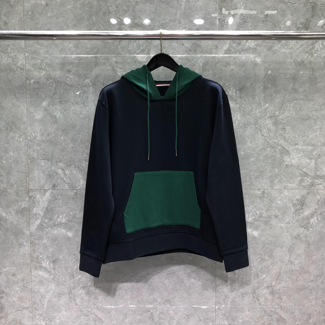 THOM BROWNE 拼色套头连帽卫衣 长袖 墨绿色