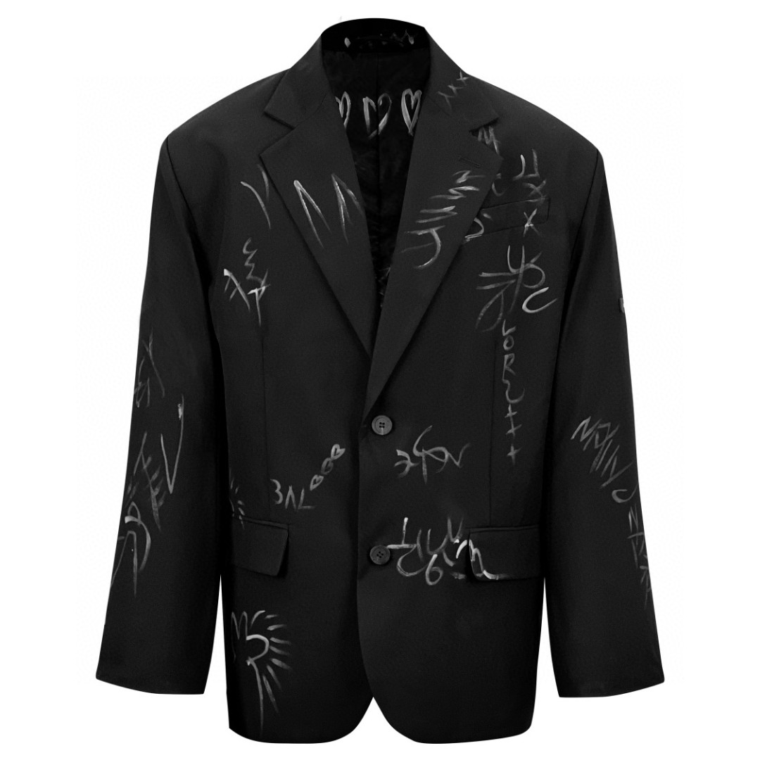 Balenciaga 巴黎世家 SS23 涂鸦印花单排扣西装外套 宽松 秋冬 黑色 739591TOT031000