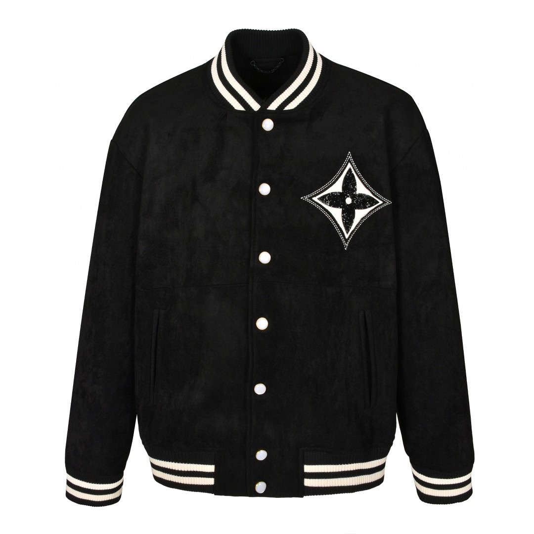 LOUIS VUITTON 路易威登 水晶缀饰麂皮棒球服 外套 夹克 长袖 黑色 1AFXEU