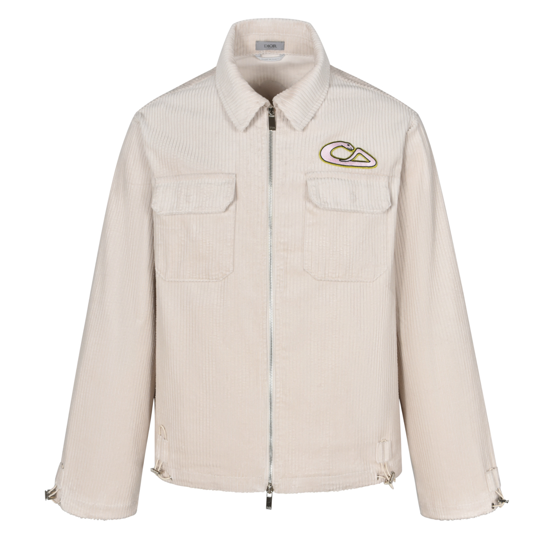 DIOR 迪奥 And Kaws 系列蛇年刺绣图案灯芯绒拉链夹克 外套 长袖 米色 513D590A297X-C084