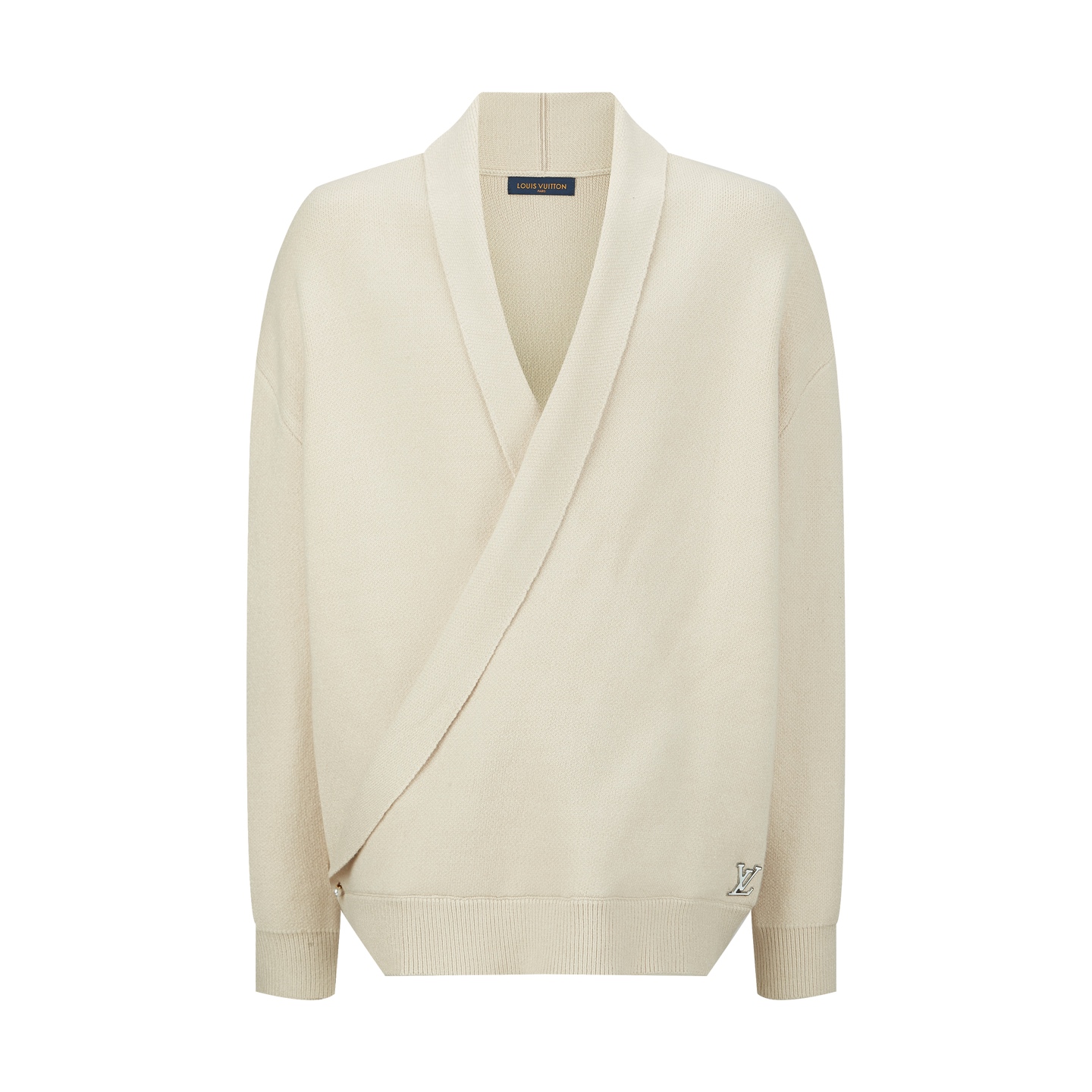 LOUIS VUITTON 路易威登 金属字母Logo徽标V领开衫 针织衫 毛衣 外套 米色 B0 1AHVNQ