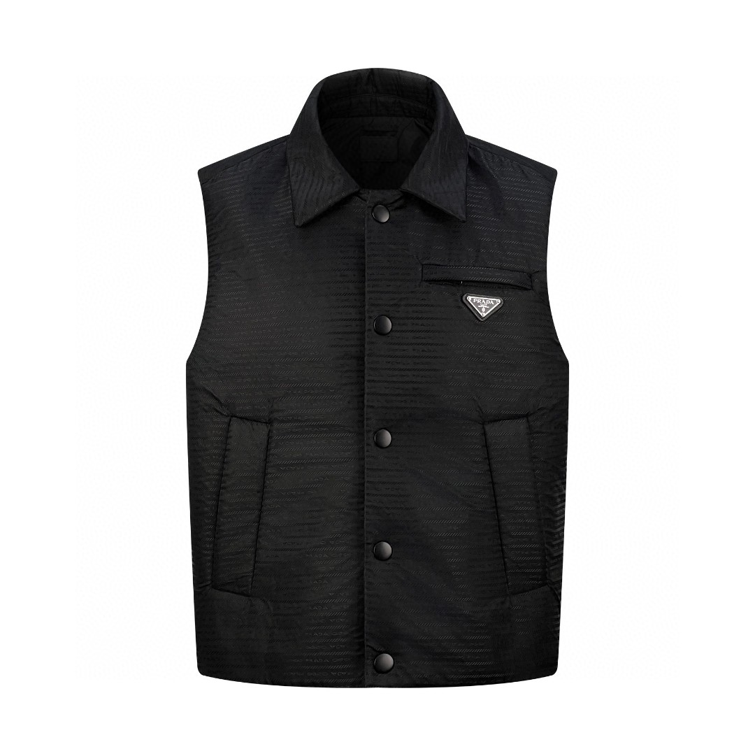 PRADA 普拉达 纯色徽标翻领马甲 棉服 无袖 男女同款 黑色 SGC058-11FC-F0002-S-221