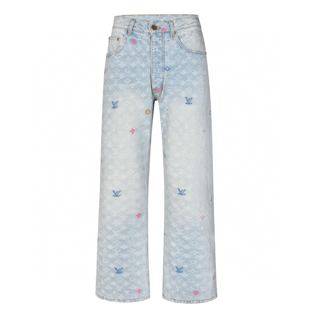 LOUIS VUITTON 路易威登 LV Nigo联名款 刺绣云朵图案牛仔裤 裤子 长裤 蓝色 B0