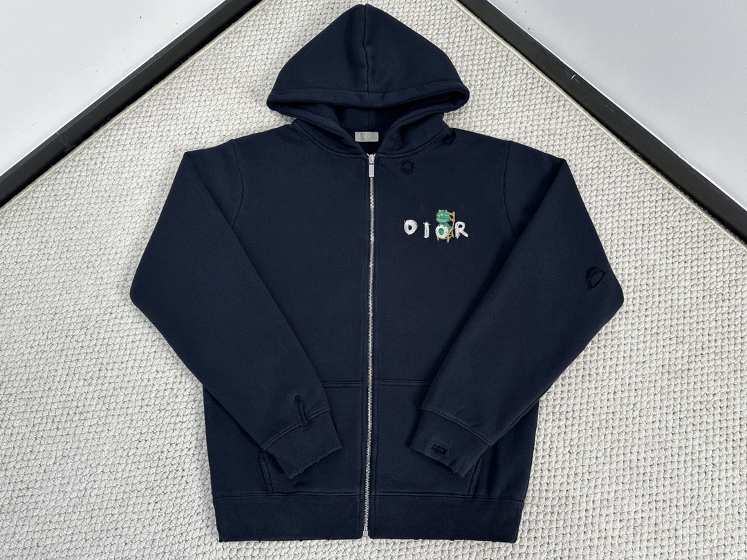 DIOR 迪奥 字母刺绣logo卡通图案 连帽卫衣 外套 秋冬款 海军蓝 413J647A0807-C580