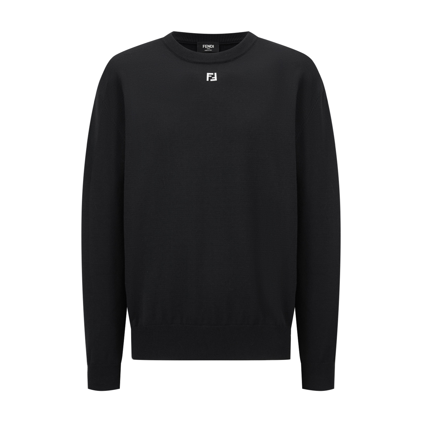 FENDI 芬迪 五金徽标圆领毛衣 针织衫 长袖 黑色 白色 B0 FZX091AU84F0ZNZ