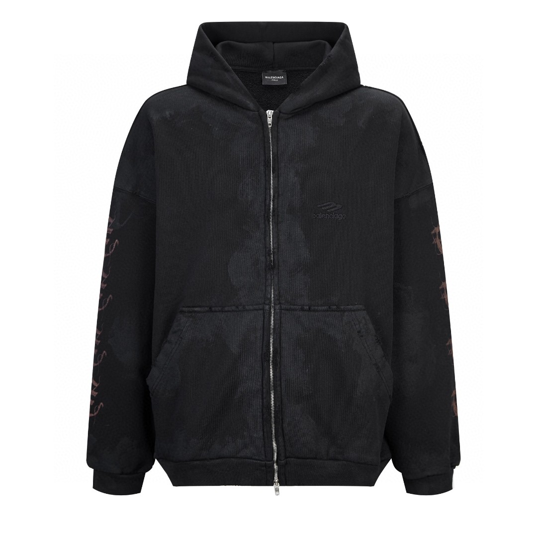 Balenciaga 巴黎世家 FW23 双头拉链做旧连帽卫衣 长袖 秋冬 男女同款 黑色 744444TOVD91055