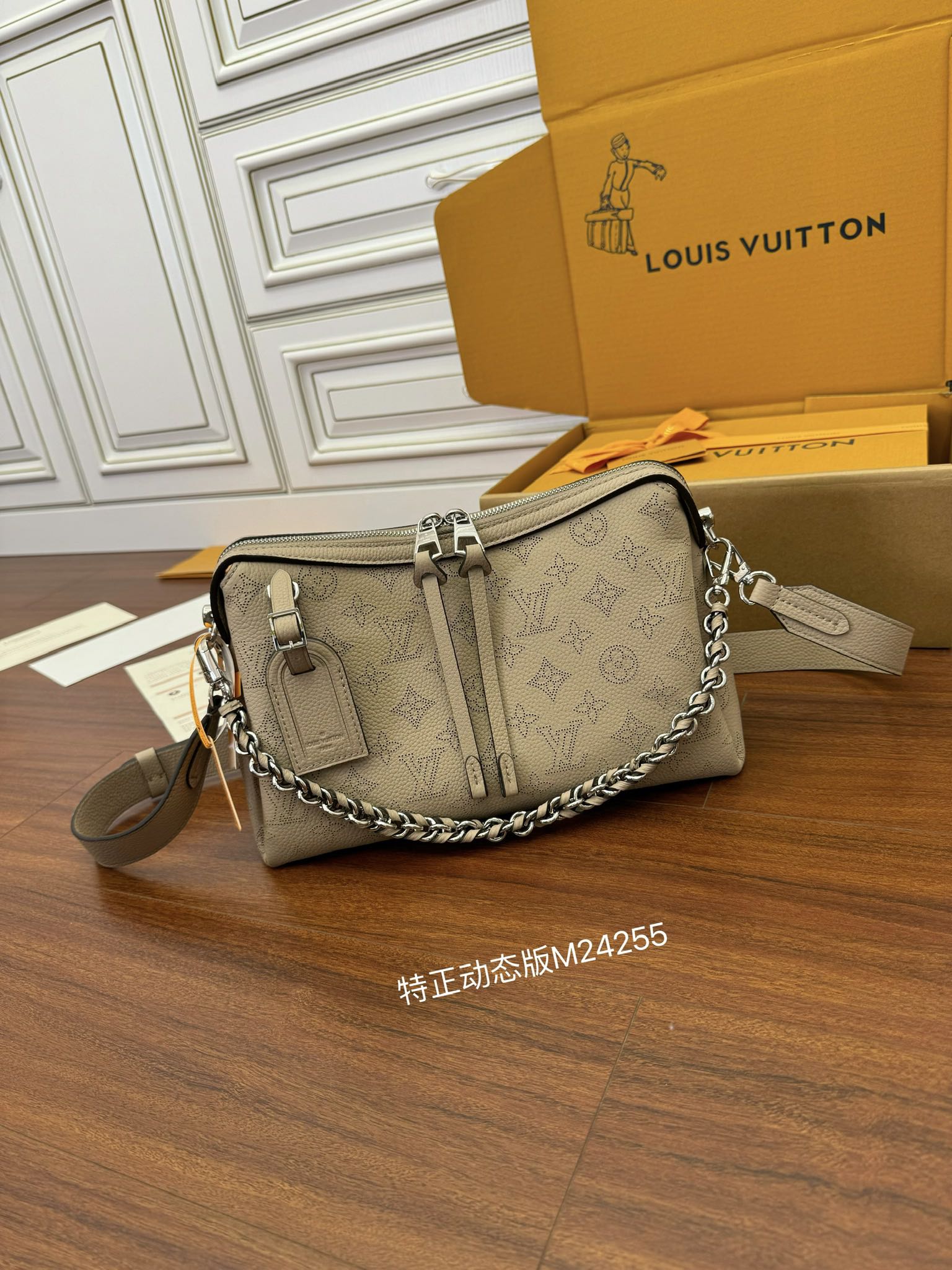 特级 LOUIS VUITTON 路易威登NewBag HAND IT ALL 可调节 翻盖 牛皮革 斜挎包 单肩包 双肩包 手提包 小號 象牙灰 M24255