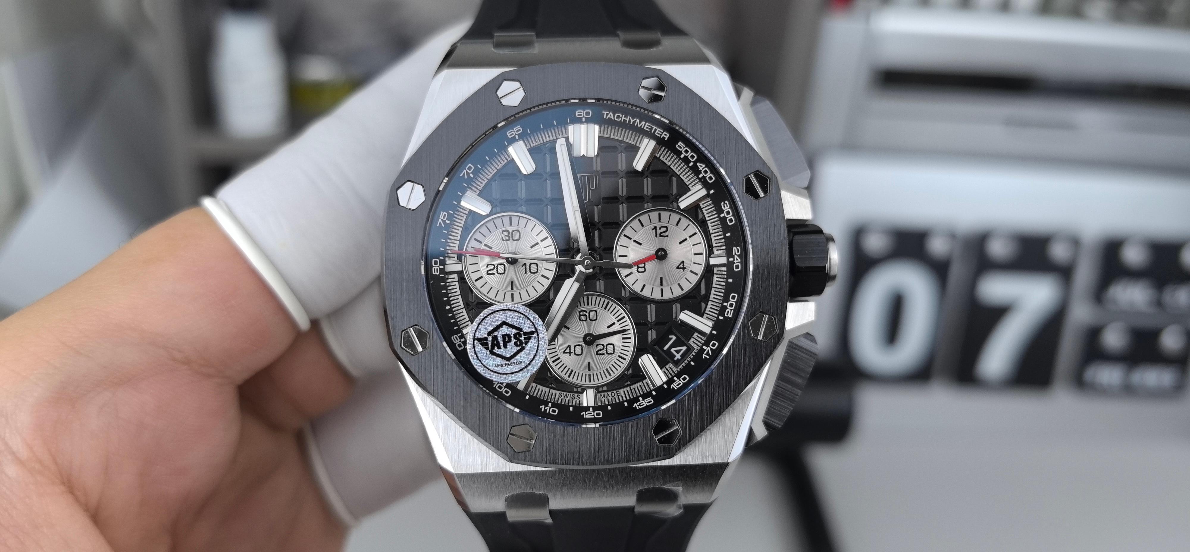 APS AUDEMARS PIGUET AP 爱彼 皇家橡树离岸型 自动机械机芯 100米防水 男表 瑞表 精钢表带 三眼计时 黑色 黑陶钢 26420SO OO A002CA 01