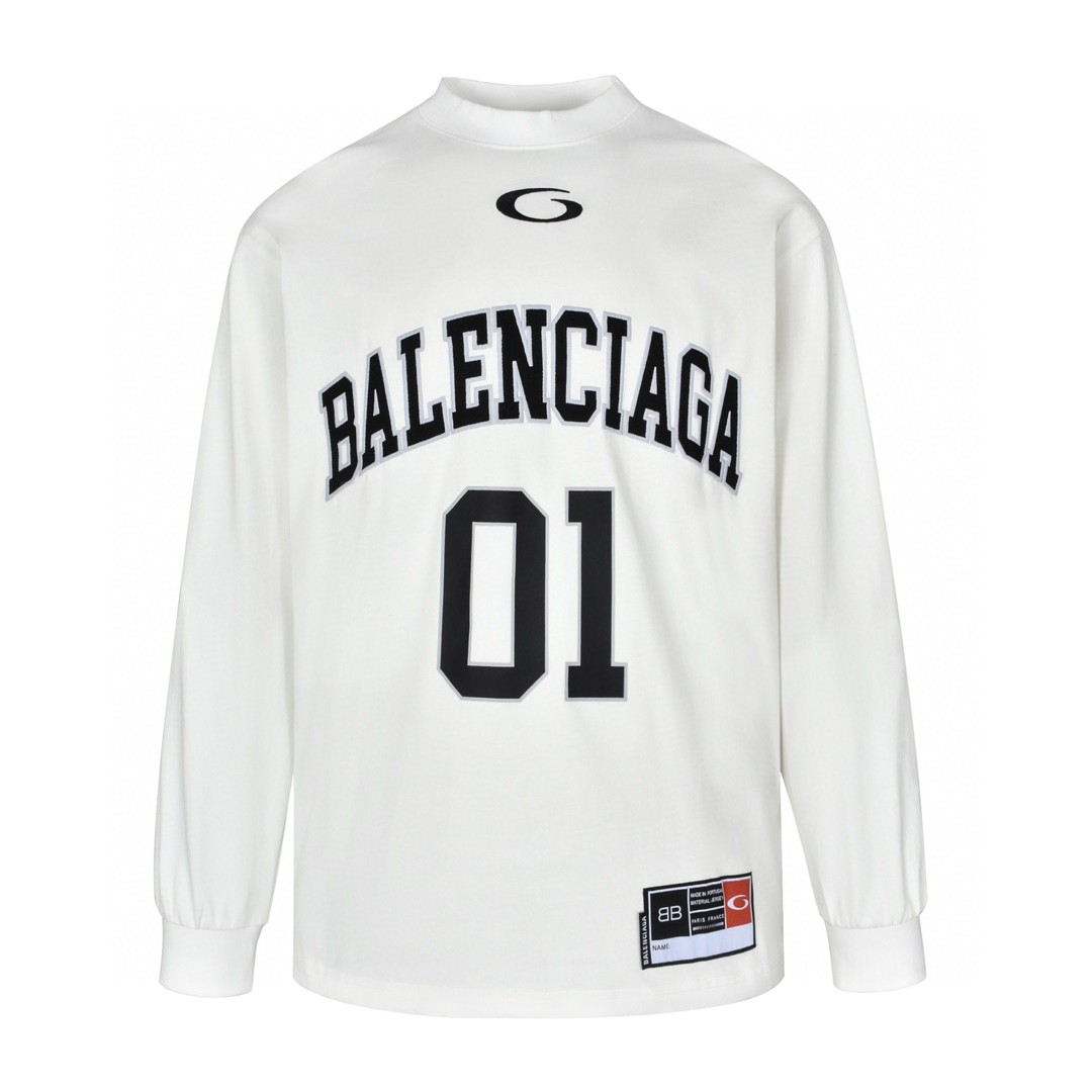 Balenciaga 巴黎世家 字母logo篮球01号印花T恤 长袖 白色