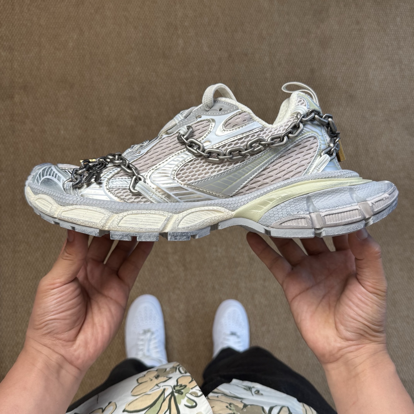 Balenciaga 巴黎世家 3XL链条挂锁 綁帶 网布 系带 做旧 低筒 老爹鞋 运动 复古板鞋 休闲鞋 男鞋 女鞋 灰白