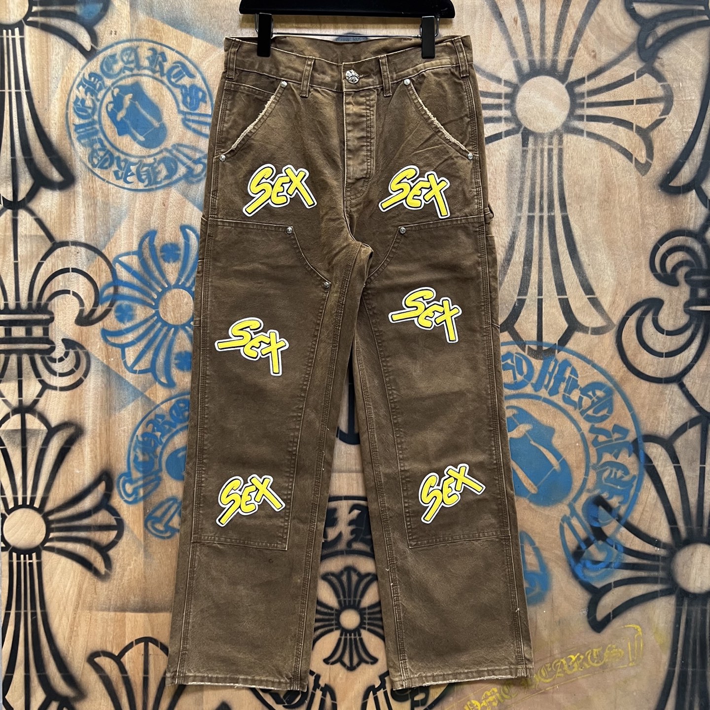 Chrome Hearts 克罗心 高街 字母图案复古 925银 牛皮辅料 水洗 工装 裤子 长裤 棕色黄字