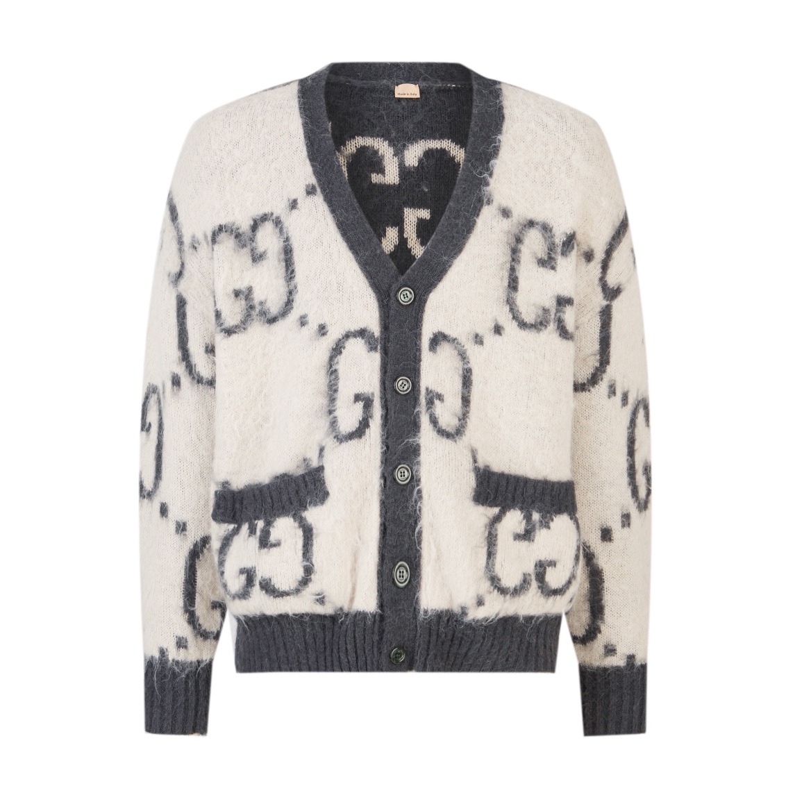 GUCCl 古驰 双面提花马海毛开衫 V领 外套 纯色 斜纹 尖领 长袖 凤搂B5 635160-XKBK2-9260