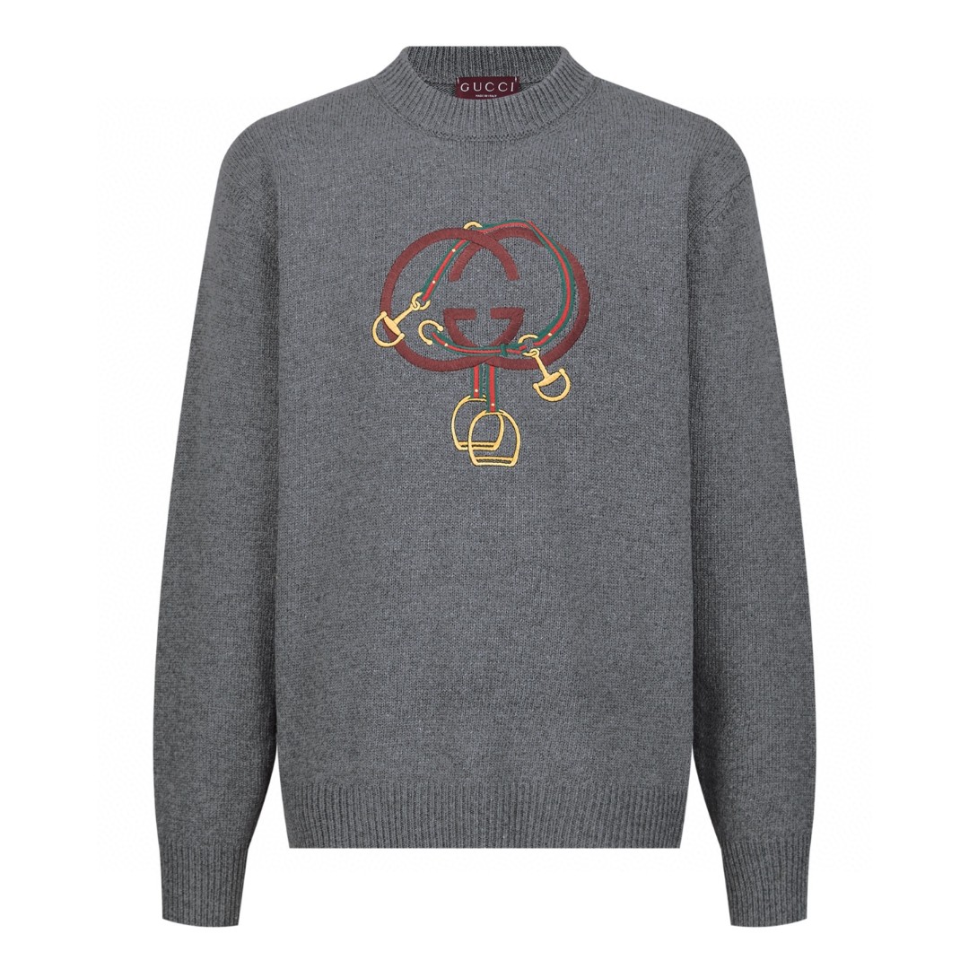 GUCCl 古驰 红灯笼双G刺绣圆领毛衣 针织衫 外套 长袖 灰色 A7
