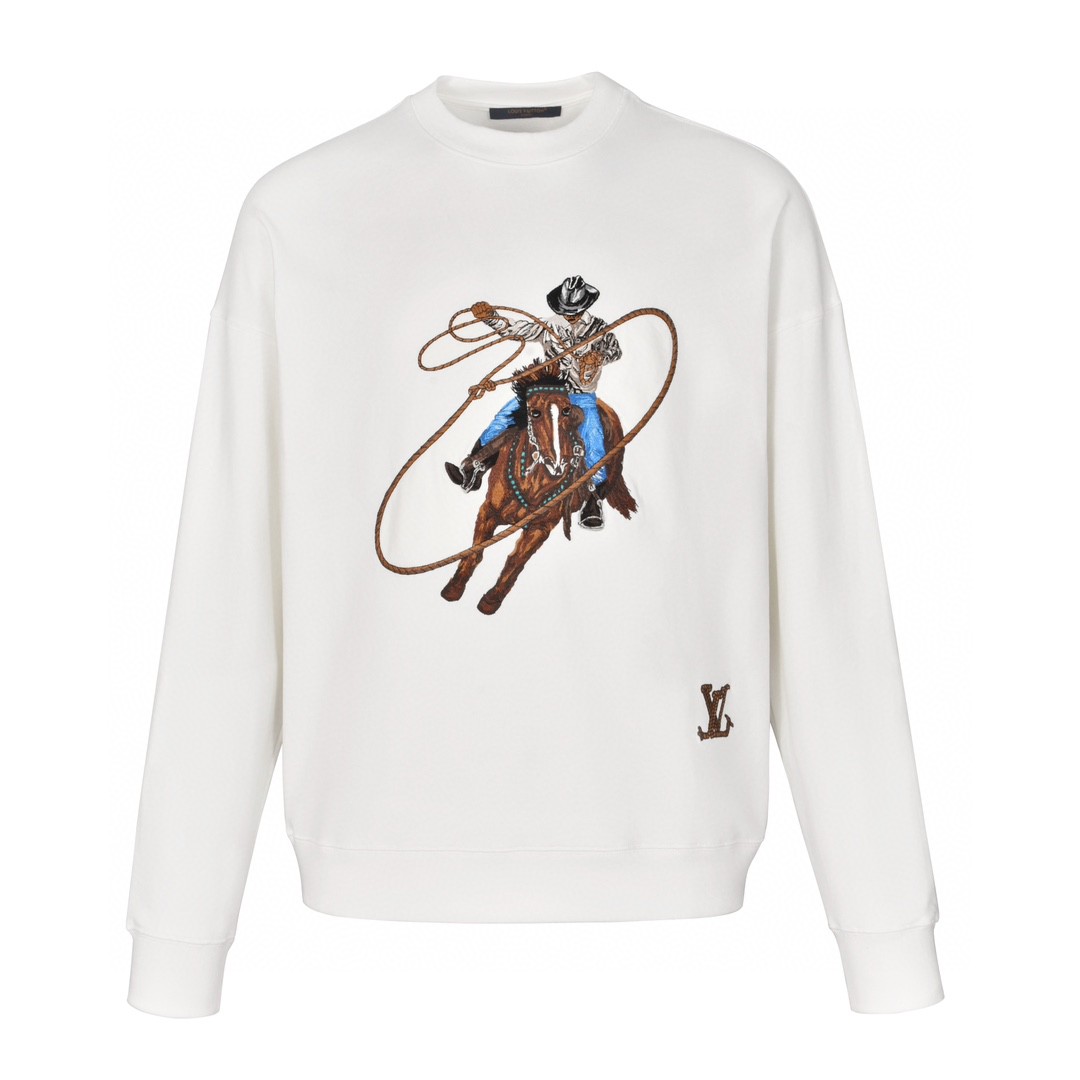 LOUIS VUITTON 路易威登 套马牛仔刺绣图案 卫衣 圆领 长袖 白色