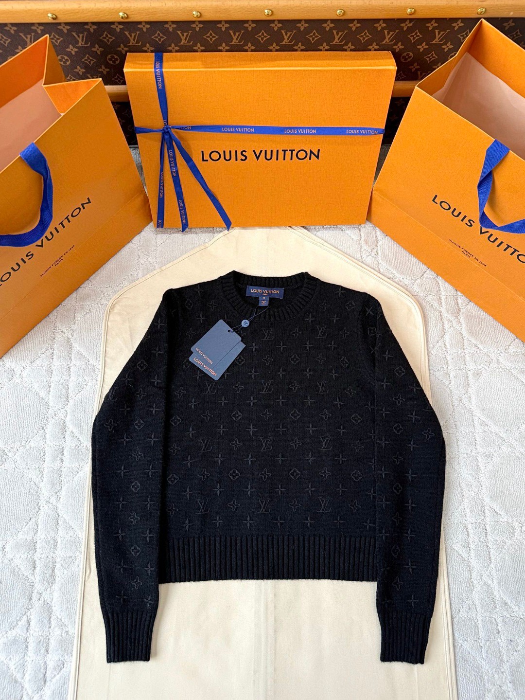 LOUIS VUITTON 路易威登 字母3D羊毛老花毛衣 针织衫 外套 长袖 黑色 白色 C0 1AHZ44