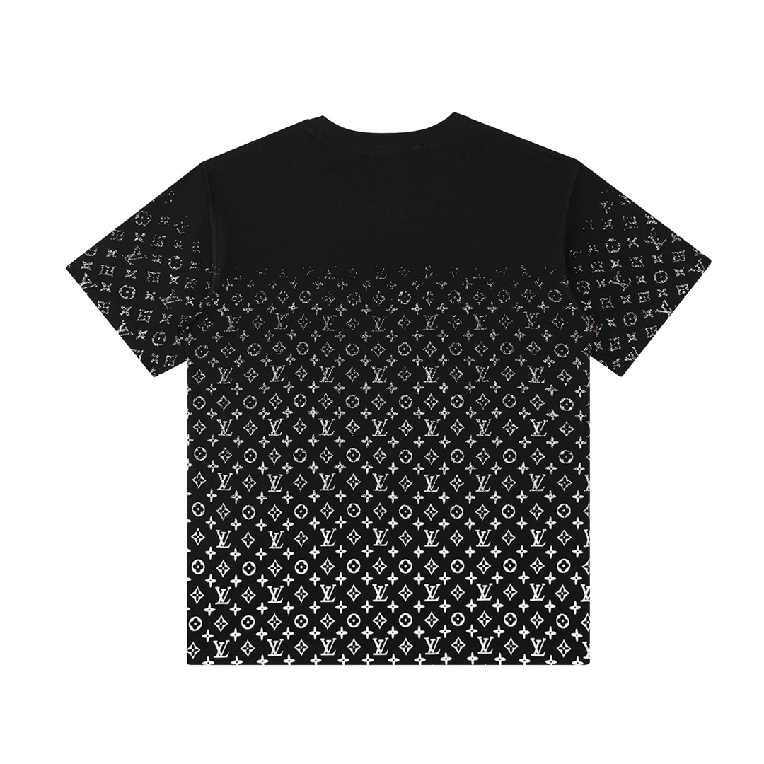 LOUIS VUITTON 路易威登 满印老花渐变logo印花 圆领 黑色 短袖 T 恤 上衣 夏款 男女同款