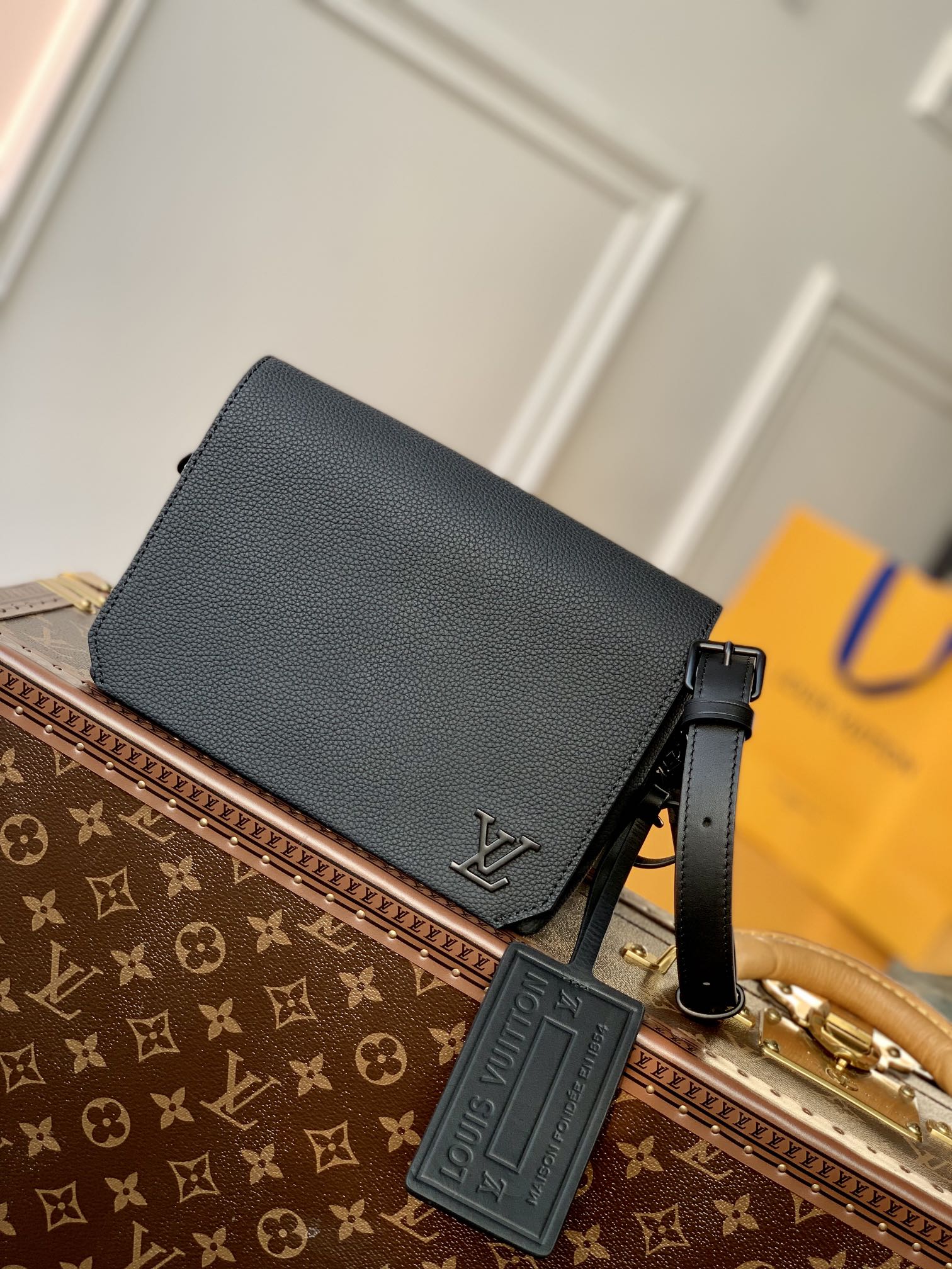 LOUIS VUITTON 路易威登 Flap 开合 老花 压纹牛皮革 斜挎包 单肩包 手提包 迷你 黑色 M82085