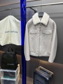 LOUIS VUITTON 路易威登 LV 可拆卸羊毛毛领夹棉羊皮夹克 皮衣 外套 保暖 长袖 黑色 白色